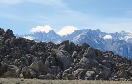 Some describe the Alabama Hills as a beefed-up version of the Jumbo Rocks area of Joshua Tree National Park, about 250 miles to the southeast. Yes, the rocks are just as huge and jumbled as those at Joshua Tree; however, you can drive among them in the Alabama Hills, and they cover a larger area. They make up a series of hills that extend about 9 miles and reach an elevation of 1,500 feet above the high-desert floor of Owens Valley. Leading to the eastern Sierra Nevada, they resemble jumbled spikes posed in front of a regal queen.