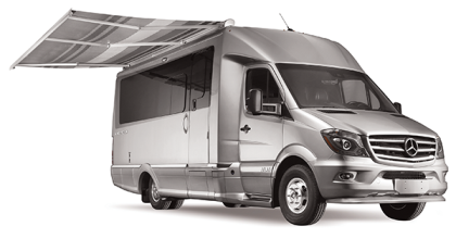 Standard equipment on the new Airstream Atlas includes a power armless awning with an auto-retract feature.