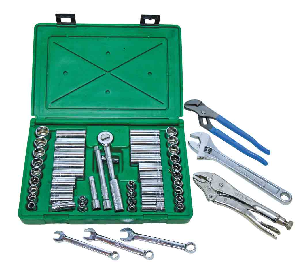 Wrenches, socket sets, and pliers. Combination wrenches with both open and box ends allow you to use either end on a bolt head or hose fitting. It’s not necessary to buy the largest set, because most repairs will require a size of ¾ inch or less. Add a 12-inch adjustable wrench for odd or larger sizes or when you need a second wrench of the same size.