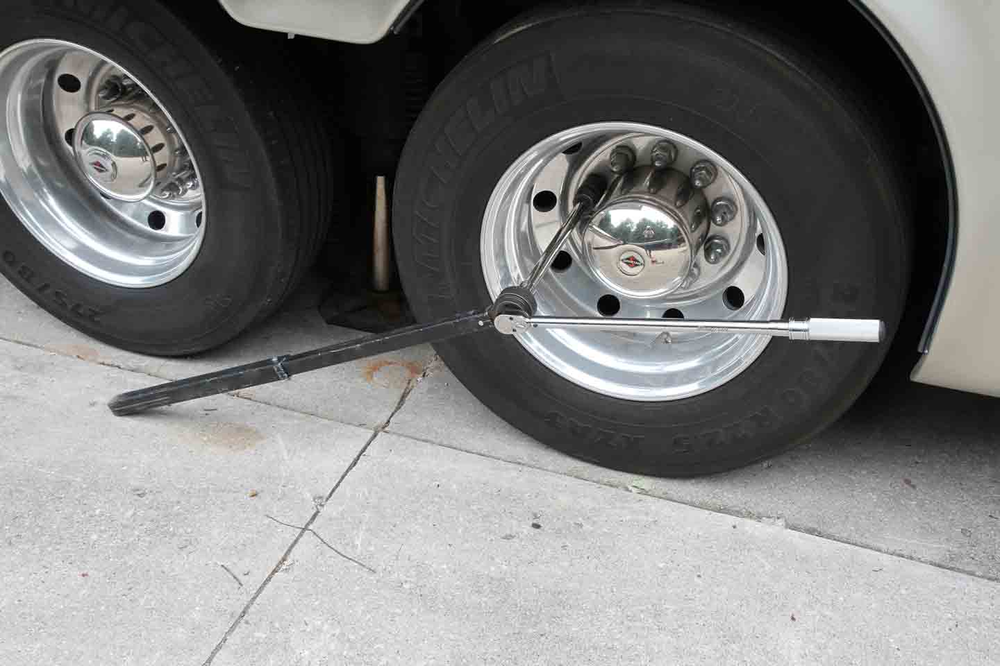 To properly tighten lug nuts on a Type A motorhome, approximately 475 pound-feet of torque most likely will be required. Once the lug nuts have been in place for a while, even more torque will be needed to remove them. To accomplish this, a person who can apply 100 pound-feet of torque per foot of leverage would need a wrench with at least a 5-foot handle.