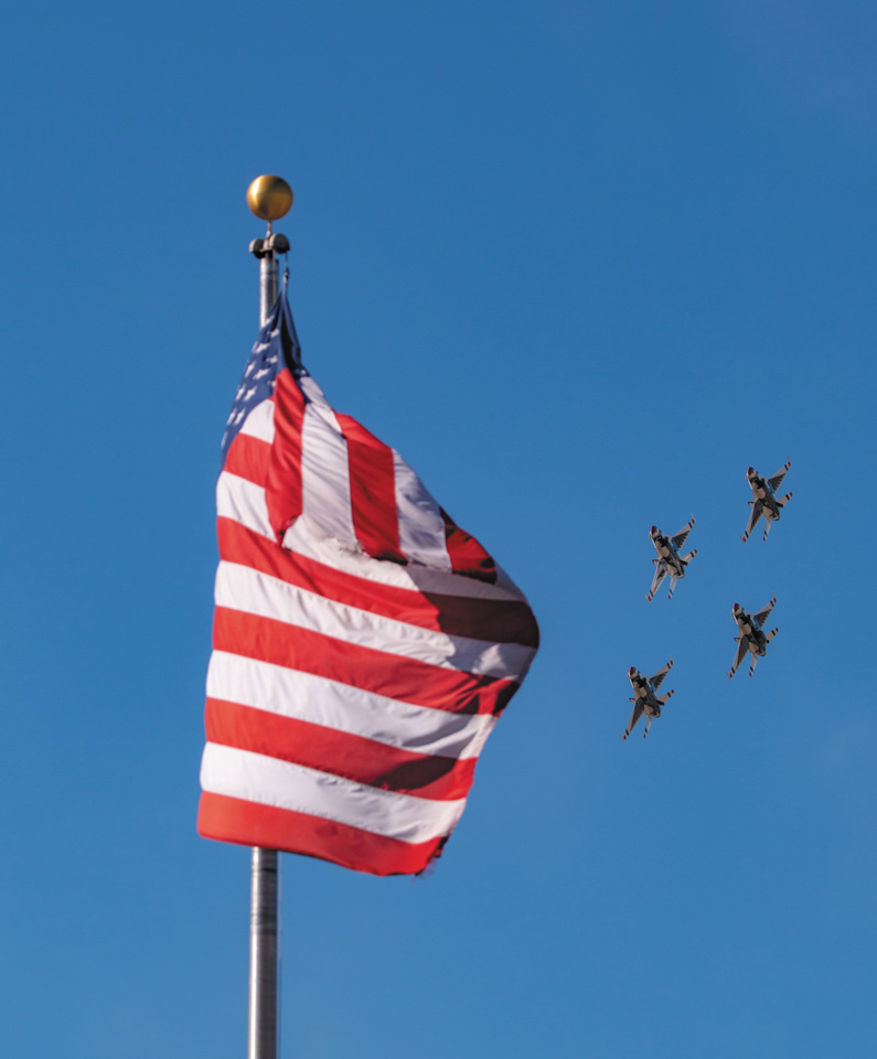 While attending an air show at Davis-Monthan Air Force Base in Arizona, Harry Hanbury witnessed the Thunderbirds, the U.S. Air Force Air Demonstration Squadron, flying in formation and, from his vantage point, appearing to salute the American flag.