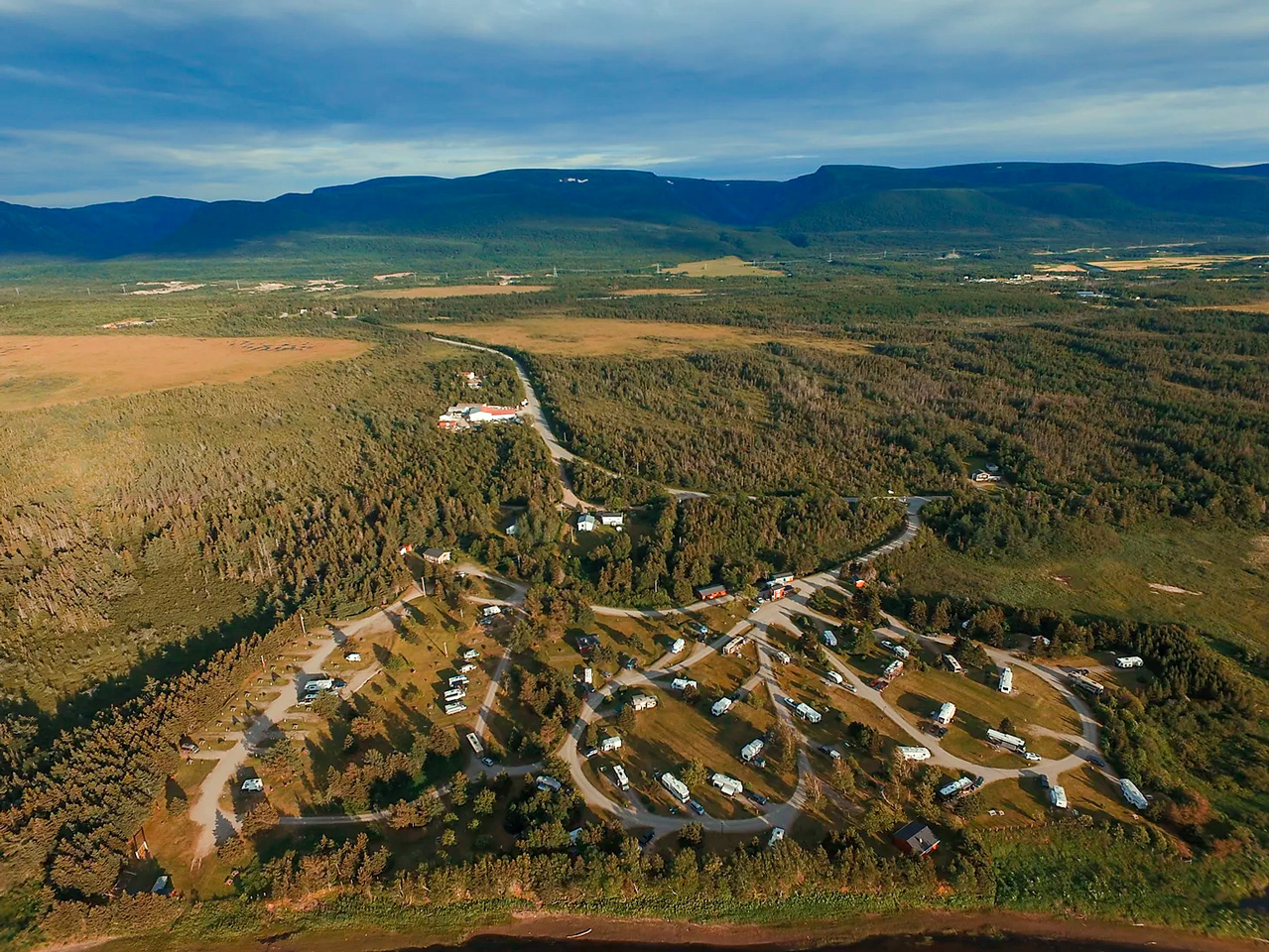 This bird’s-eye view of Grand Codroy RV/Tent Camping Park gives a glimpse of the campground’s layout and the beauty that surrounds it.