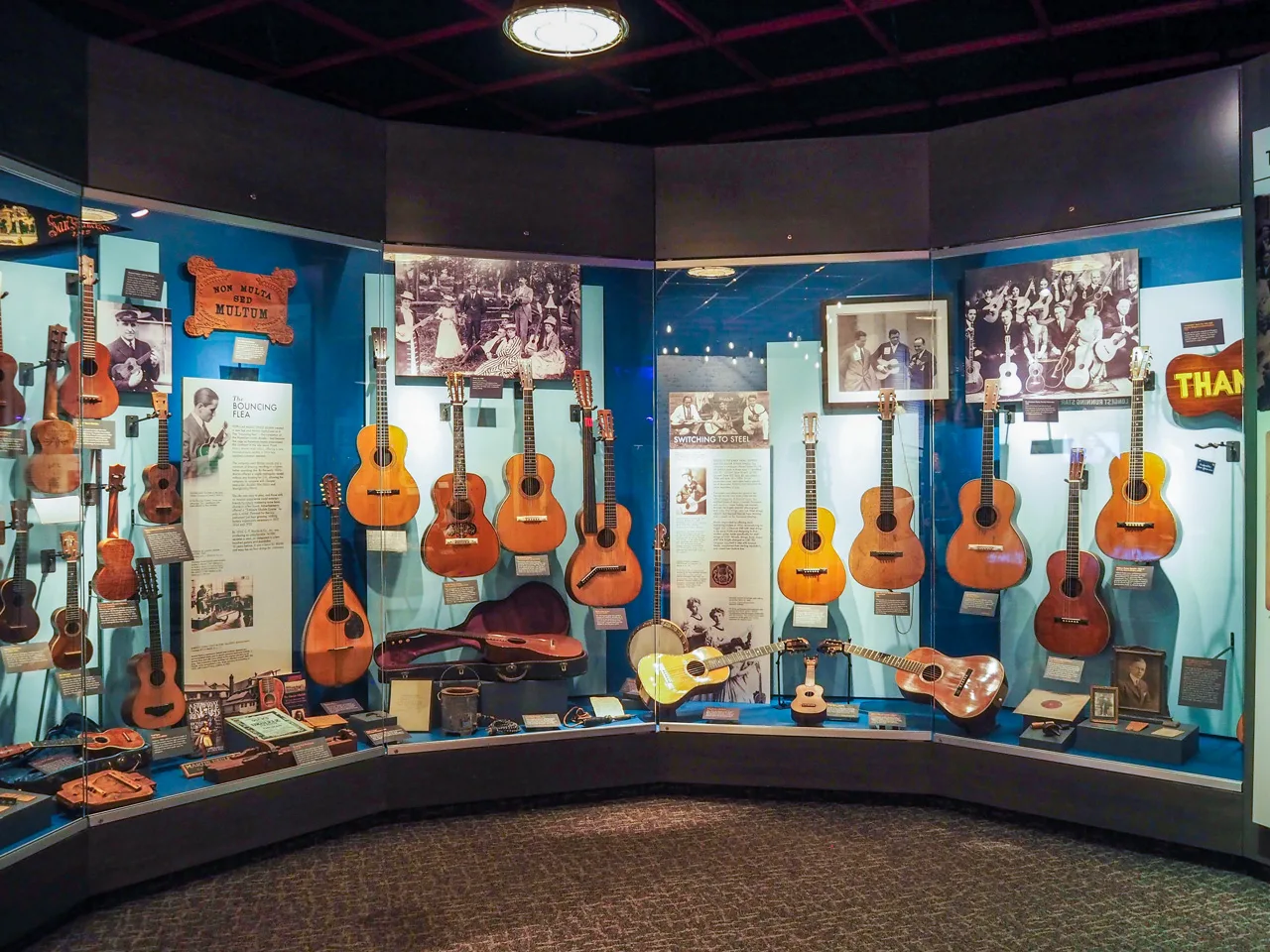 The museum tracks a timeline from the 1800s through the golden era of the 1930s and ’40s when Martin guitars took center stage with old-time ballad, blues, and cowboy singers such as Gene Autry. In the early 1950s, Elvis blasted into fame with his leather-covered Martin dreadnought (featuring a percussive rhythm and powerful acoustic design) and a musical style that melded blues and country to launch what we now call rock and roll. By the mid-1960s, Martin production was backordered by almost three years. Sales soared again when Martin guitars found their way into the hands of music legends such as Simon & Garfunkel, John Lennon, Paul McCartney, Eric Clapton, and Willie Nelson. Their iconic instruments pack the glass display cases that line the museum walls.