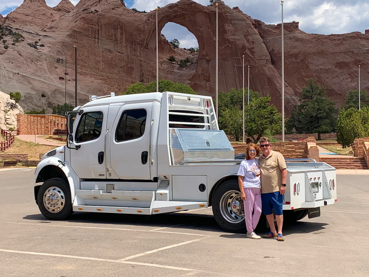 Jim and Sue Wall posed with their SportChassis towing vehicle during a trip from Florida to as far west as Utah.