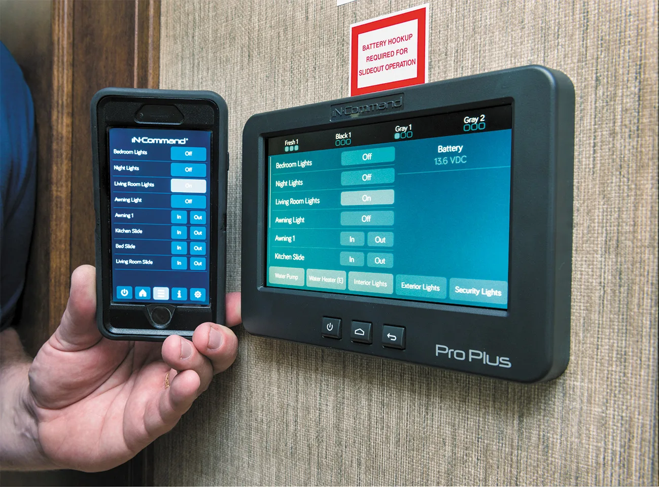 The iN-Command Pro Plus has an interactive touchpad and smart-device app that make it possible to control an RV’s systems anywhere.